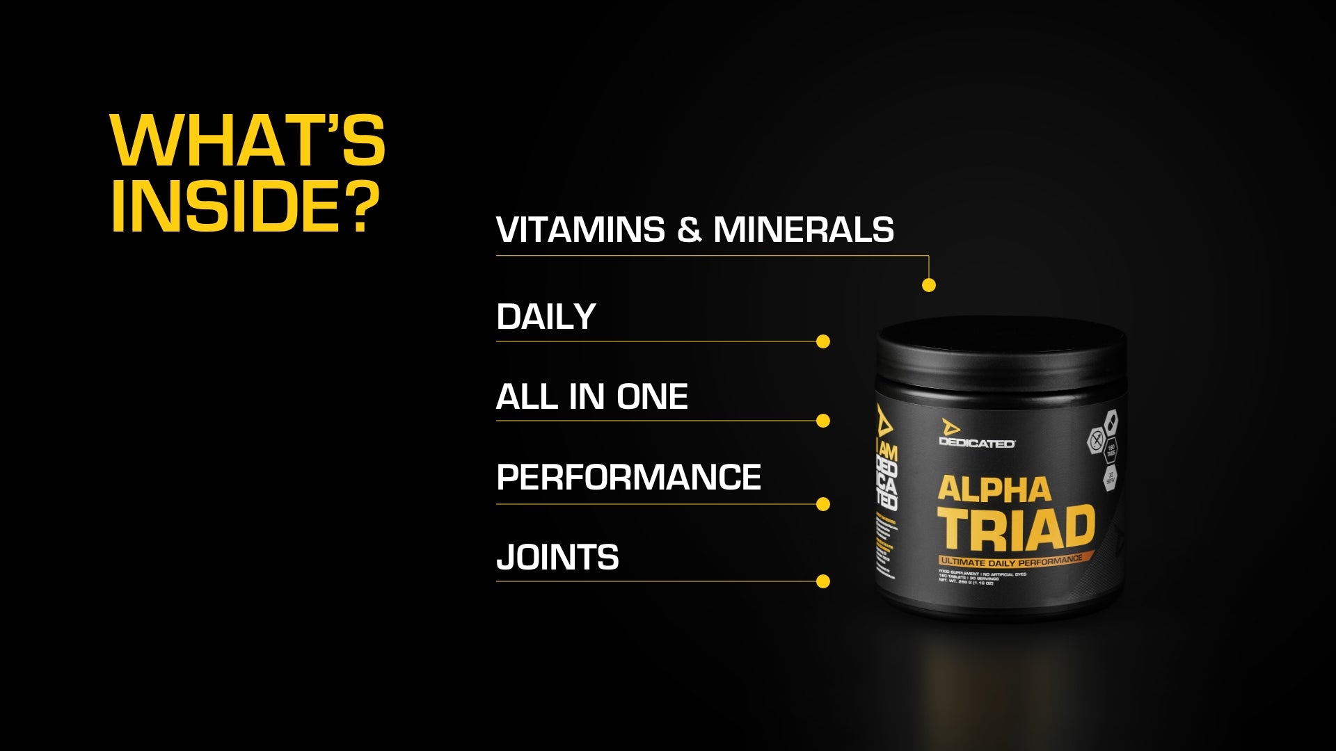 DEDICATED ALPHA TRIAD™ is the ultimate athlete’s Daily Support Supplement on the planet.